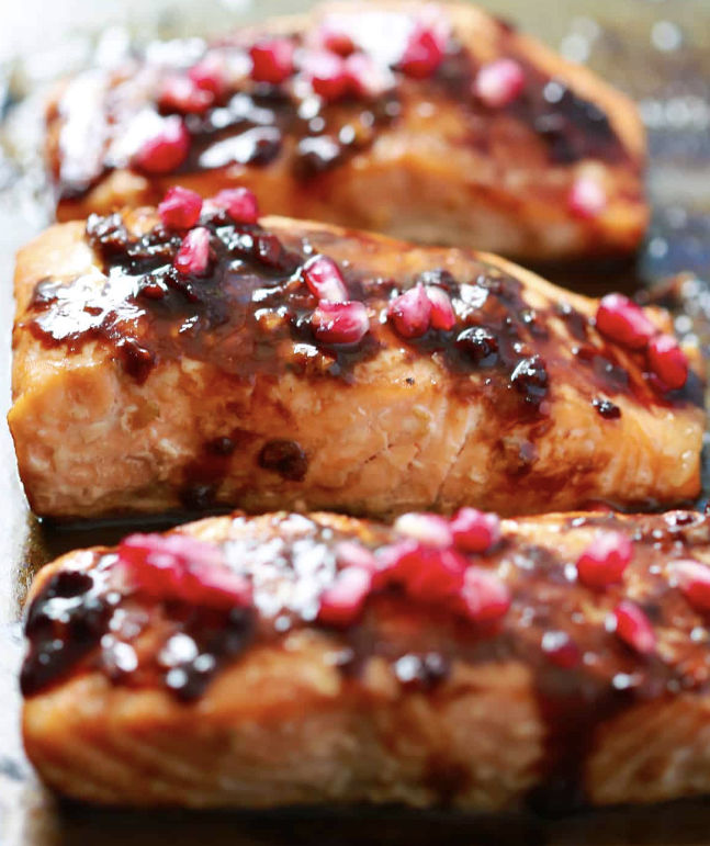 Chilled Roasted Salmon with Middle Eastern Spices and Pomegranate Glaze