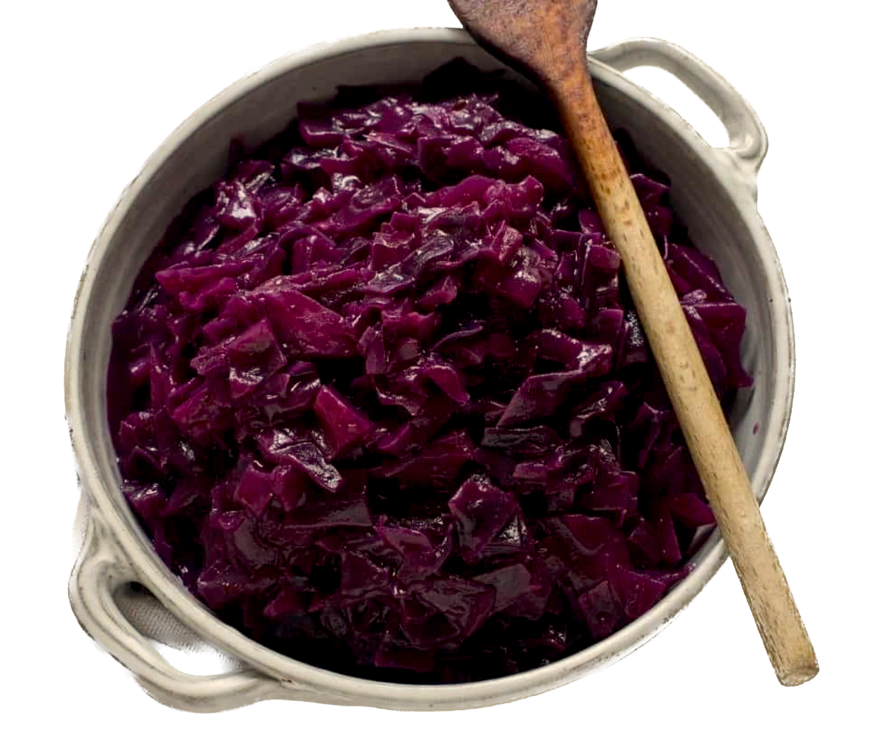 Simmer gently, covered, for 2—3 hours, or until cabbage is very tender. Check it often, give it a stir, and make sure it isn’t drying out on the bottom. Add a splash of water to keep it from scorching. occasionally, and if necessary, add a little hot water to prevent scorching.