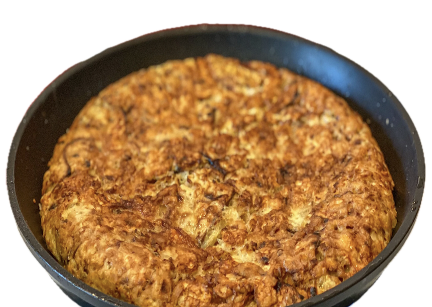 Matzo Farfel Frittata with caramelized vegetables, Orange gravy